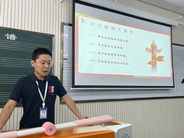 会议的主要内容,张海龙老师对中国共产党五个阶段的发展历程分别展开了陈述。张海龙老师通过回顾中国共产党的百年光辉历程展开会议,主要围绕开天辟地大事件、擎天撼地大胜利、改天换地大建设、翻天覆地大跨越、惊天动地大复兴五个历史阶段,为我们讲述中国共产党从萌芽时期到中国特色社会主义新时代的发展历程。为了增加党课的互动性和深刻记忆党的重大事件,海龙老师提出了几个简单的问题,例如:党的“一大”召开的具体时间和地点等问题。