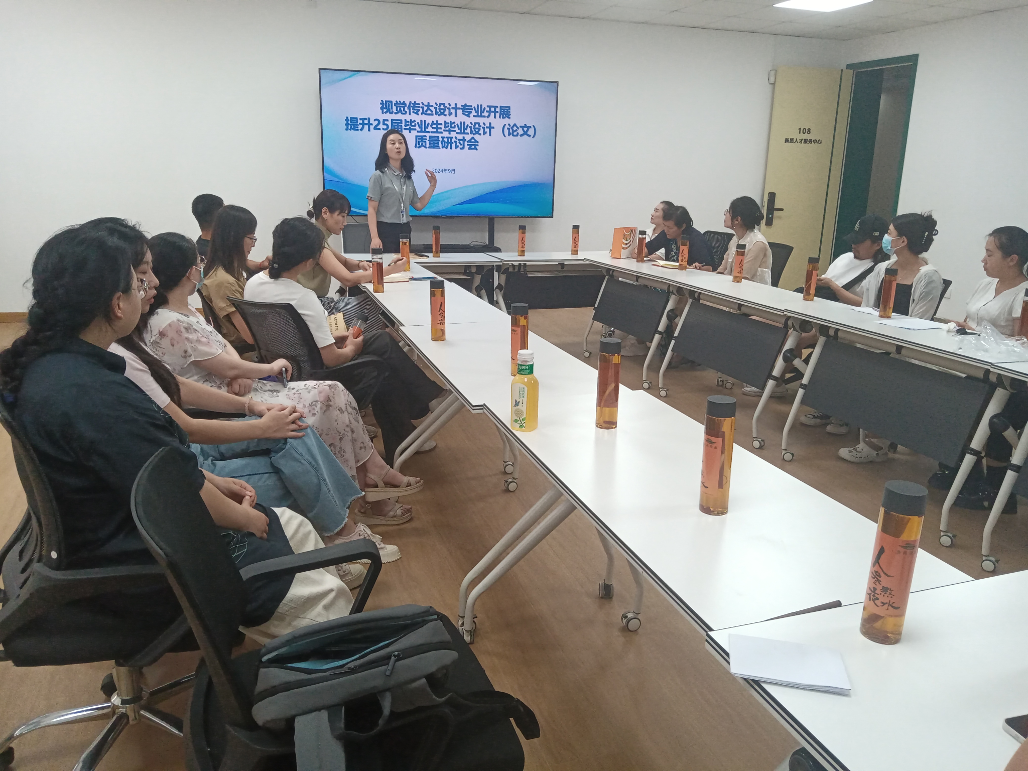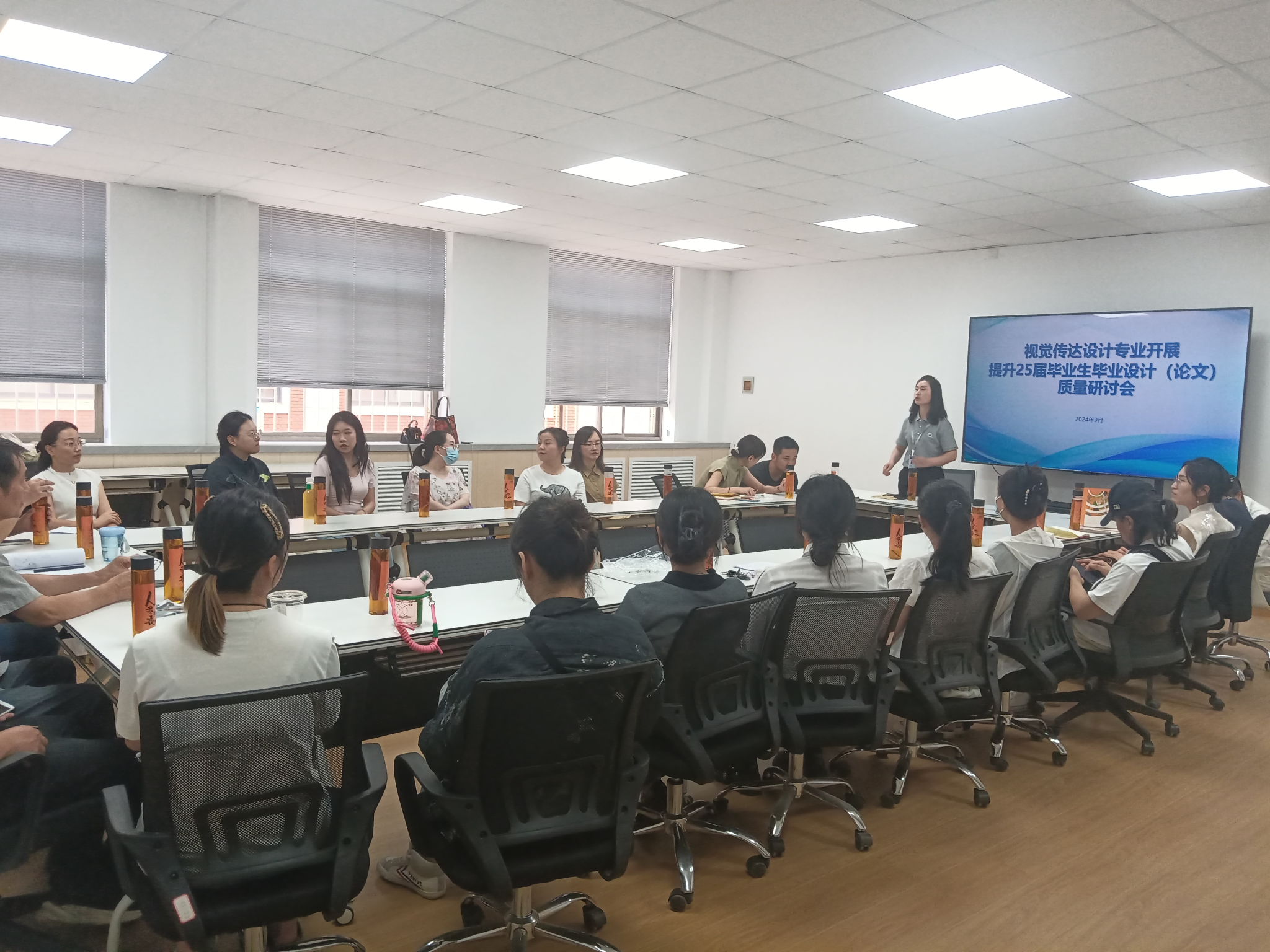 2024年9月10日,yL23411永利集团官网视觉传达设计教研室全体专职教师在商管楼108会议室召开了以“提升2025届毕业生毕业设计(论文)质量”为主题的研讨会。此次会议旨在进一步提高毕业生的毕业设计和论文质量,为2025届毕业生的毕业工作打下坚实基础。会议由教研室主任郭红秀主持,视传全体教师共同参与。