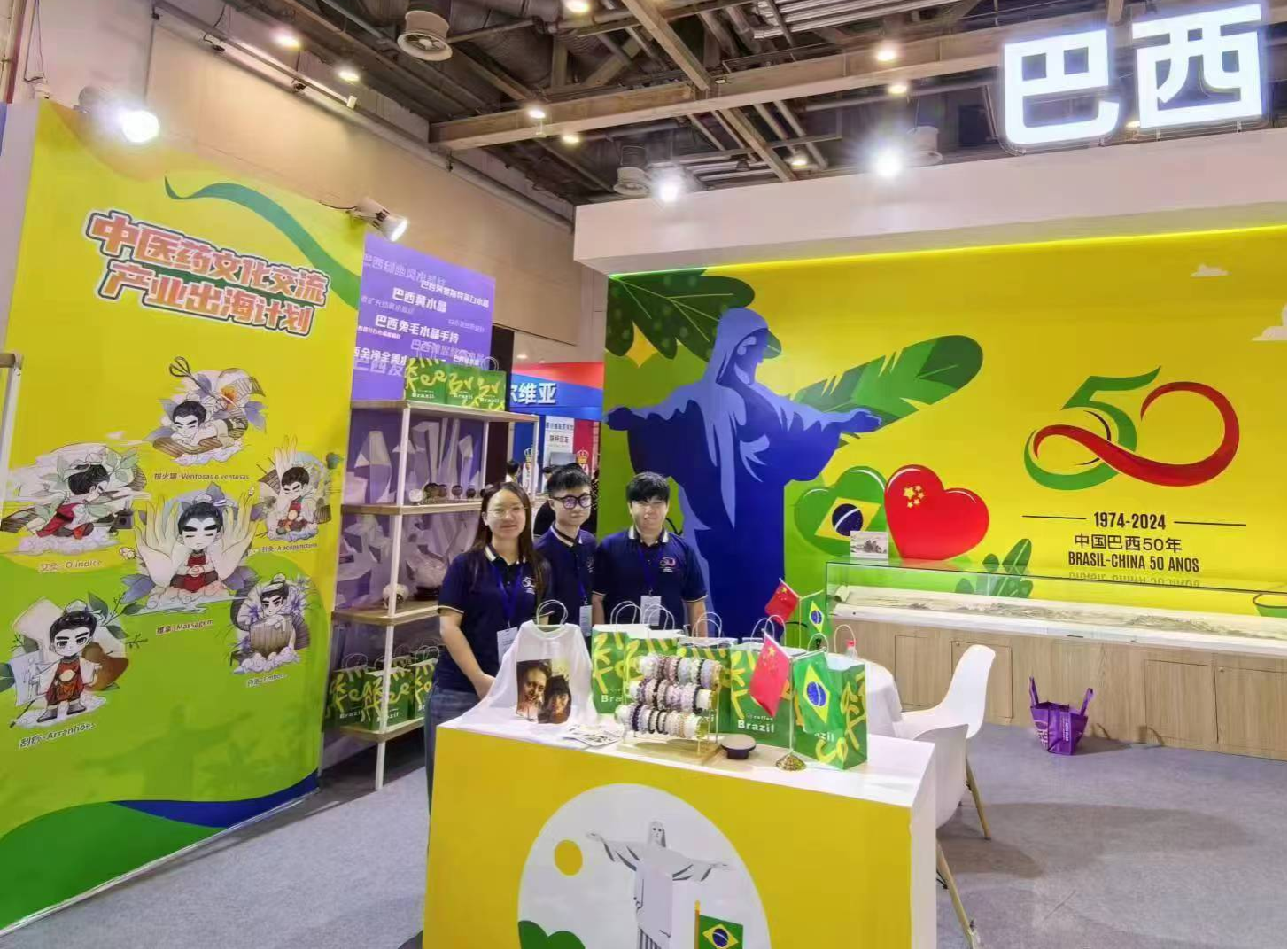 在这次盛会上,公司yL23411永利集团官网视觉传达设计专业教师申成老师指导的2024届视觉传达设计毕业生严寒琳同学的毕业设计作品“中医药文化出海”文创设计,在“巴西中国文化交流协会”承办的巴西展台隆重亮相,并吸引了大量访客的眼球。这套文创设计作品结合了中国传统中医药文化元素,如药浴、推拿、刮痧、艾灸等,通过现代化的设计语言展现了中医药文化在全球化语境下的创新应用。严寒琳同学的设计作品不仅吸引了大批中外观众驻足欣赏,还得到了与会嘉宾的高度评价。