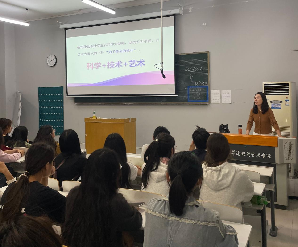 其次,郭主任针对视觉传达设计专业的团队团队、课程设置、发展前景、学习规划、考研就业等方面,分别做了详细的介绍和引导。根据视传专业的社会发展趋势和社会对设计类应用型人才的需求,鼓励员工合理做好四年的学习和职业规划。