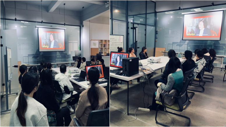 在活动中,姜新宇主任首先介绍了于漪教育精神的核心思想,强调作为教师除了传授知识,更肩负着培养下一代思想、塑造国家未来的重大责任。随后,安赛老师带领大家观看了影片,影片详细讲述了于漪老师如何将教育工作与国家命运紧密相连、如何在长期的教学实践中贯彻教育家精神,启迪和激励无数青年学子。