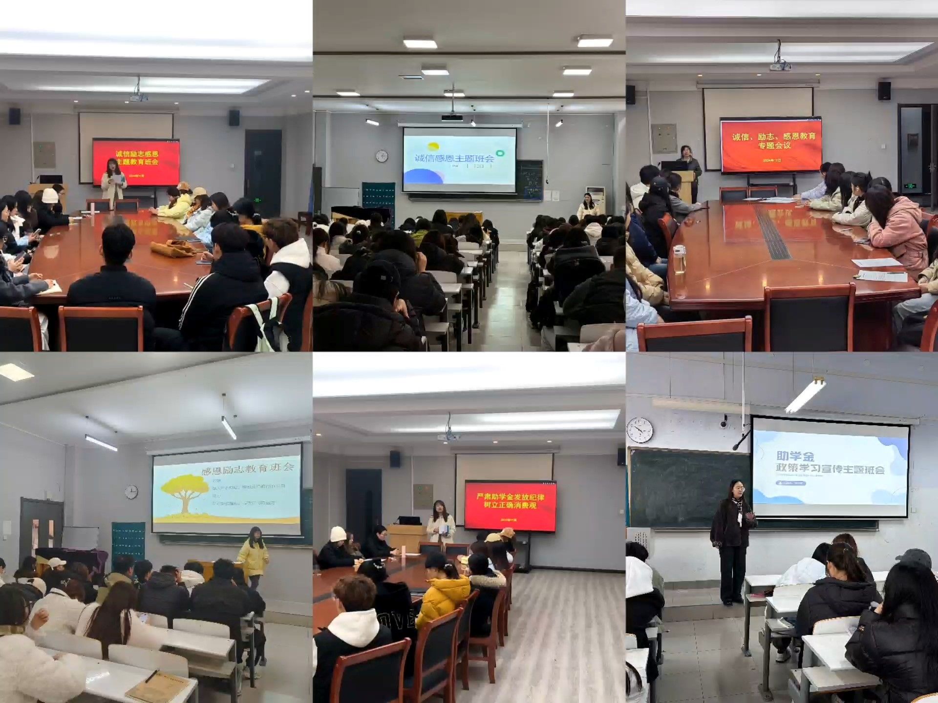 各辅导员老师以班级为单位,召开了“自立、自强、感恩、励志”教育主题班会。会上,老师们再次向同学们介绍了高校资助政策体系,使同学们对国家资助政策有了更为全面地了解。其次,围绕奖助学金的使用,辅导员老师们再次向员工们强调要遵守校规校纪、合理使用所获助学金、严禁以任何名义收取、侵占、挪用、扣减员工的奖助学金。受助员工要珍惜每一分国家资助,把所获助学金用于正常学习及生活费用,严禁受助员工进行请客、送礼、奢侈消费等活动,如发现有上述行为,按照《员工手册》严肃处理。最后,为加强教育效果,加深员工们“自立、自强、感恩、励志”意识,老师们通过名人事迹以及员工们身边的励志榜样对“自立自强”、“感恩励志”进行了深刻的剖析,以员工喜闻乐见的方式告诉同学们:一要懂得珍惜,学会感恩,获得奖助学金的同学要珍惜这份来之不易的资助,常怀感恩之心,以实际行动报答父母、感恩母校、奉献社会。二要穷且益坚,树立远大理想,以正确的心态对待贫穷,艰苦奋斗,做到“穷且益坚、不坠青云之志”。三要自立自强,励志成才,要潜心学习,争取在专业领域取得优异的成绩,也要注重参加社会实践,提高自己的综合能力。