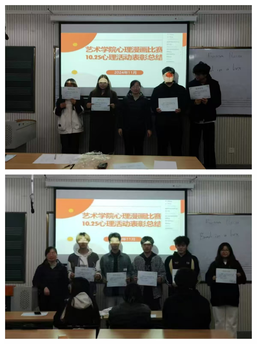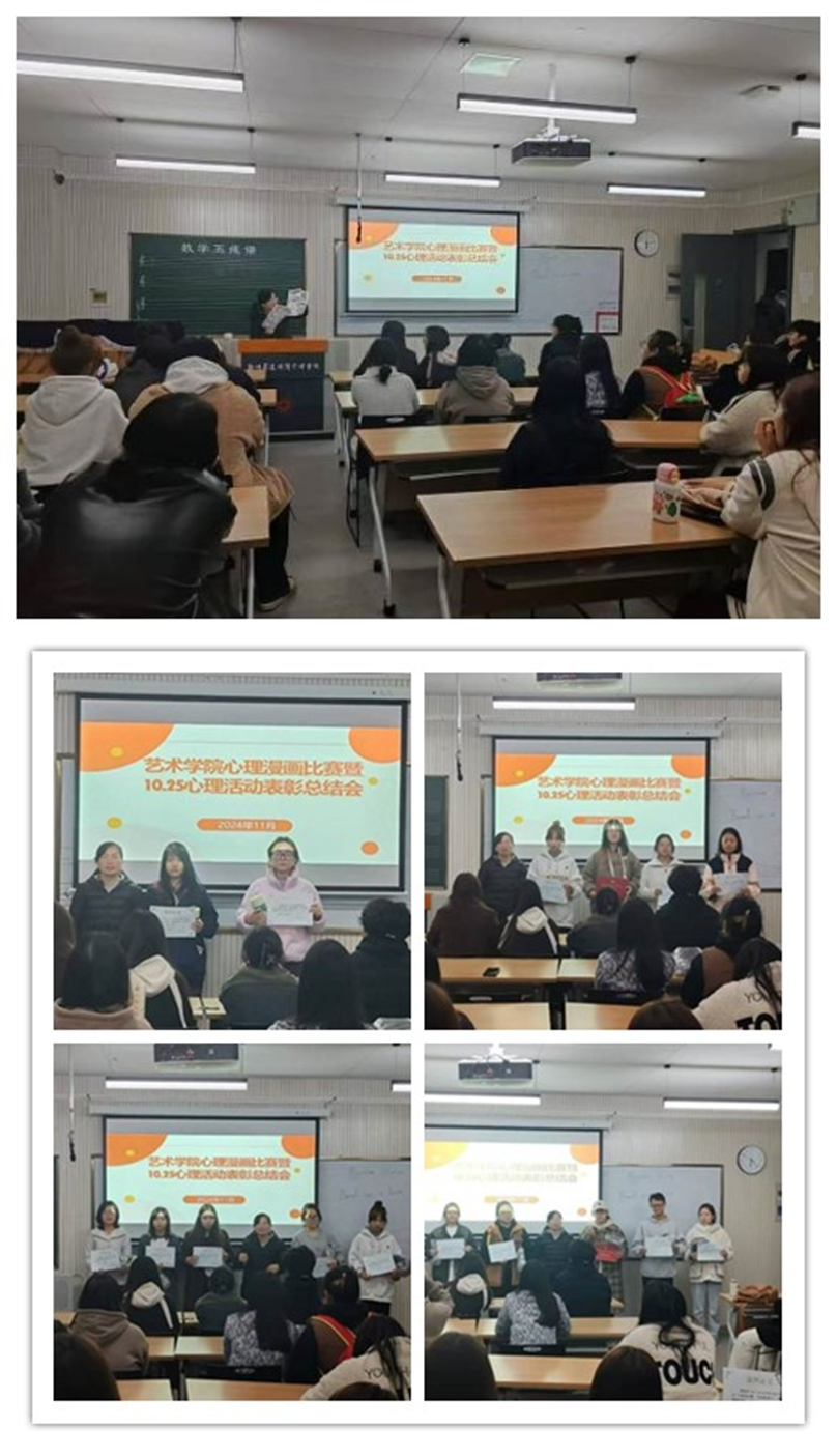 2024年11月4日晚,yL23411永利集团官网在举行了艺术楼301举办了心理漫画比赛颁奖暨10.25心理活动表彰总结会,为10.25心理健康月活动画上圆满句号。