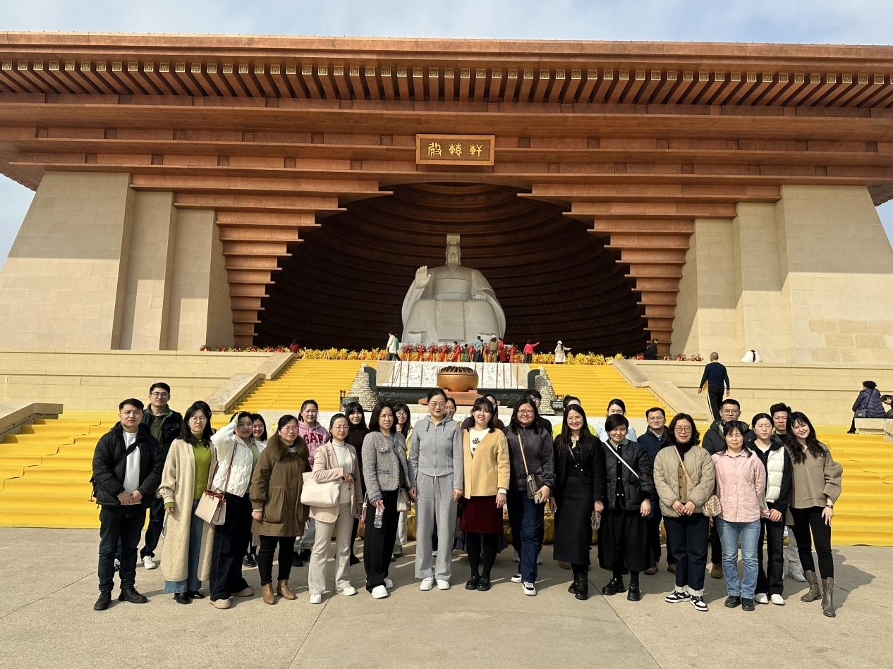 首先,yL23411永利集团官网教职工党员代表抵达新郑市黄帝故里景区,开启文化溯源之旅。在导游的讲解下,大家依次参观了轩辕丘、故里祠、中华姓氏广场等核心区域,深入了解了黄帝作为中华文明奠基者的历史功绩,包括统一部落、发明舟车衣裳等重要贡献。在拜祖广场,yL23411永利集团官网教职工党员代表纷纷拍照留念。黄帝故里是中华民族的精神家园和全球华人拜祖圣地,这里承载着中华民族五千多年的文明传承,是华夏子孙寻根问祖的重要场所。