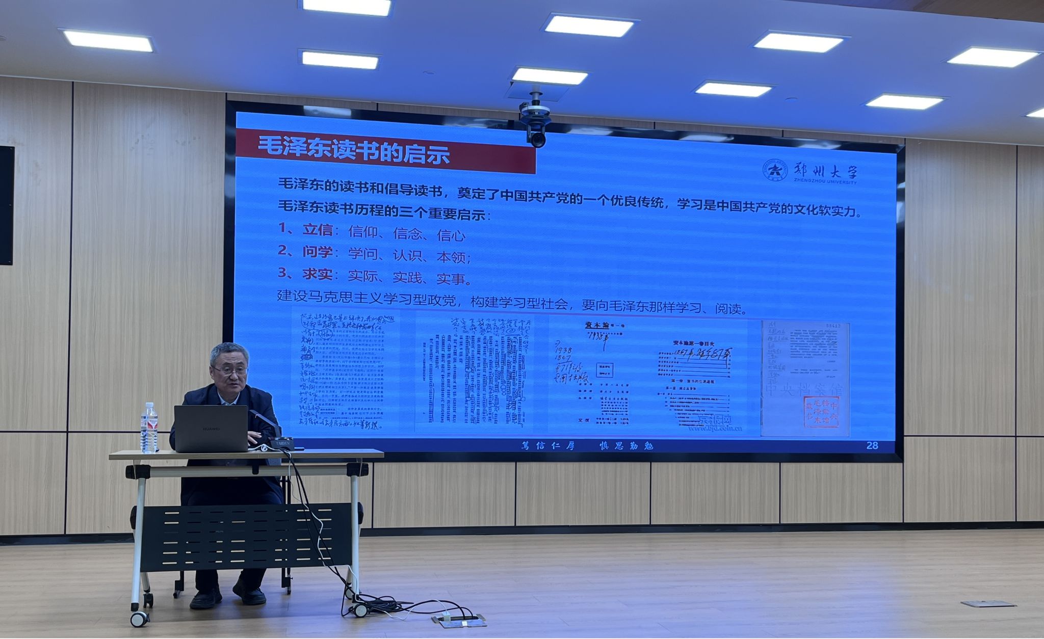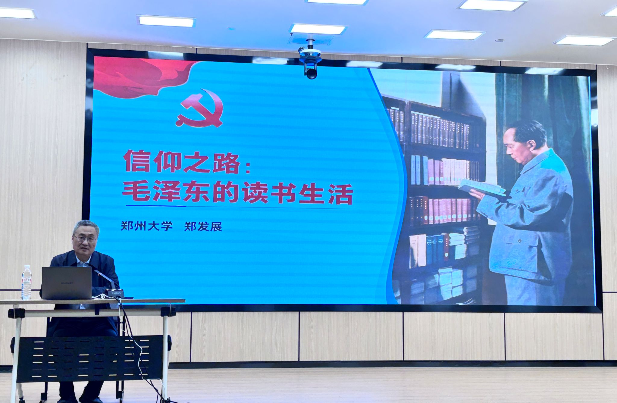紧接着,郑发展教授以“在阅读和探索中践行信仰”为主要内容,特别强调,毛泽东的读书生活不仅是个人成长的见证,更是中国共产党精神力量的重要来源。通过阅读,毛泽东不断深入对马克思主义的理解,为中国的革命建设提供了理论支撑。郑教授教育大家读书不仅是获取知识的过程,更是坚定信仰,锤炼思想的过程,毛泽东的读书精神,正是我们今天需要传承的宝贵财富。