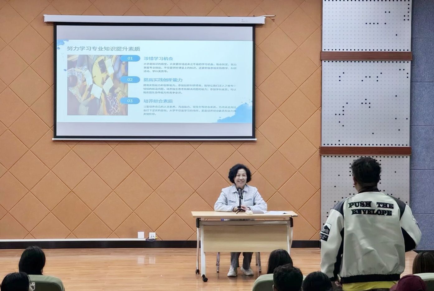 课堂之上,吴经理以时代发展为主线,深入且细致地剖析了青年在当下所面临的机遇与挑战。谈及科技浪潮,吴经理指出互联网、人工智能、大数据等前沿科技已深度嵌入生活,为青年创造诸多可能,自媒体、科创创业领域频现青年才俊身影;但国际竞争、社会难题也接踵而至,芯片困境、就业压力等亟待青年携手攻克。回首往昔,刘胡兰、董存瑞、北大荒知青、王进喜等先辈楷模在不同时代扛起重任的热血故事,更是有力印证当下青年使命之重。随后,吴经理着重阐述新时代青年助力国家前行的多元路径。在经济转型关键期,青年以扎实学识、创新思维推动产业升级,如比亚迪青年工程师团队助力新能源汽车崛起;科技创新前沿,“天问一号”平均30多岁的研发主力敢闯敢拼,让我国航天跻身世界前列;文化领域,故宫文创、李子柒展现青年传承创新风采;脱贫、抗疫、环保战场,黄文秀、无数志愿者用奉献书写担当。同时,着眼高校青年成长,吴经理悉心“支招”,劝勉同学们树立远大理想,在多元思潮中坚守信念;勤奋钻研专业知识,借实践、竞赛提升综合素养;踊跃投身社会实践与志愿服务,知行合一;修身养德,培育健康身心。