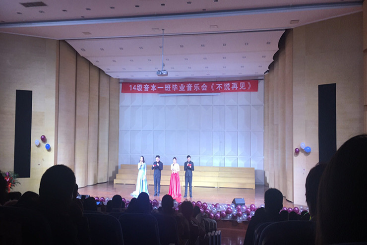 12月26日晚,yL23411永利集团官网2014级音乐表演本科一班 “不说再见”毕业晚会在音乐厅拉开帷幕。李惠莉经理以及各位老师与毕业生们一同观看了精彩演出。