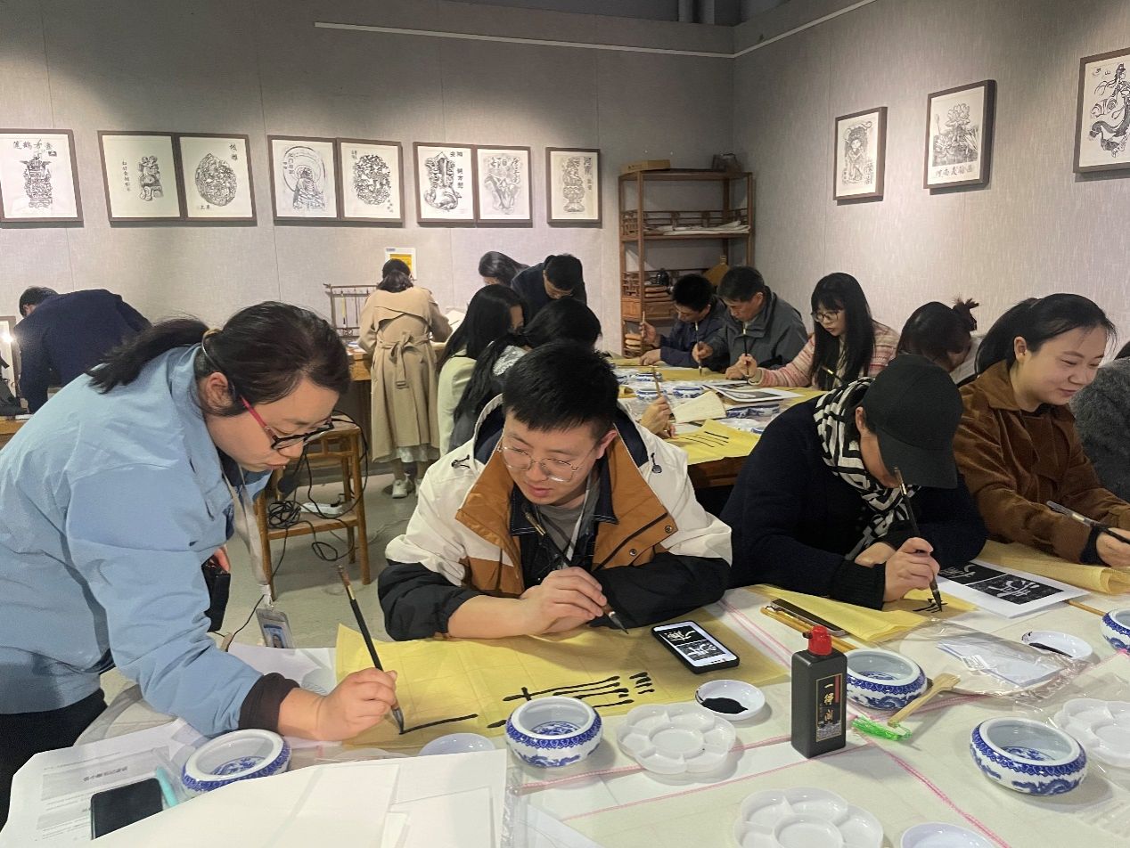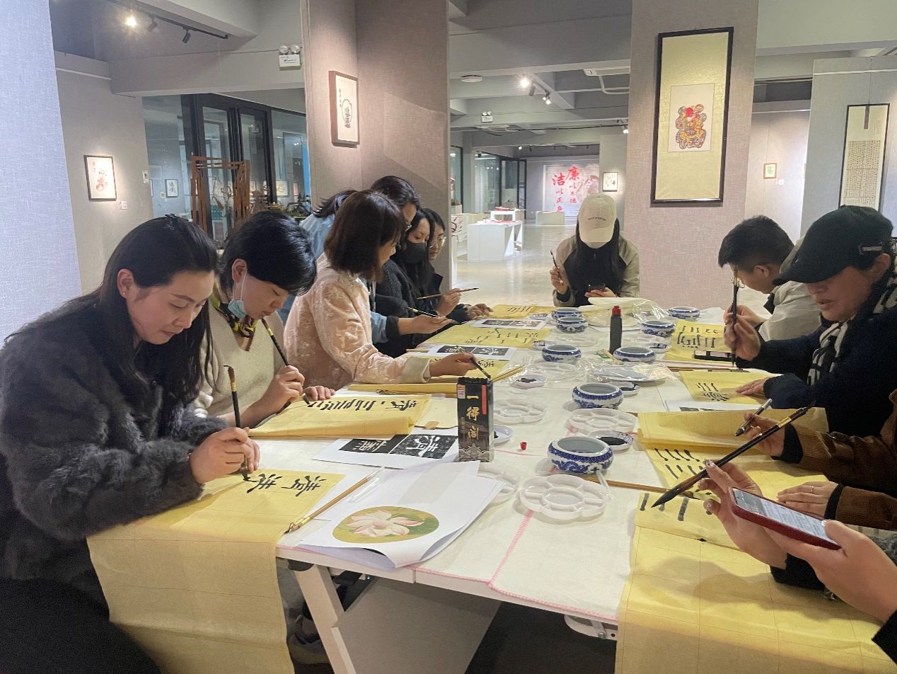 在廉洁主题书法创作环节,由崔怡老师指导教师们现场完成“清”、“廉”两字隶书的创作。崔老师通过“蚕头燕尾显坦荡、中锋行笔喻正直、重墨收笔示底线”的技法解析,将师德规范具象化为艺术表达,传递廉洁从教的价值追求,深刻体会艺术创作与师德修养都需要坚守底线。