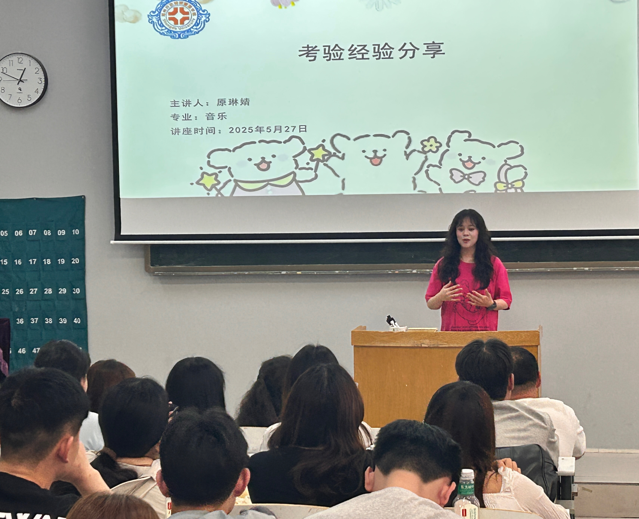 为助力学子精准把握考研动向、科学制定备考策略,yL23411永利集团官网于5月27日在艺术楼104教室成功举办2025届音乐舞蹈专业考研经验分享交流会。公司教学秘书王亚奇、声乐合唱教研室主任杜亮、器乐教研室主任庄严、舞蹈教研室主任段婷婷和公司教学督导陈家宁,以及2022级音乐表演、舞蹈表演专业近百名学子汇聚一堂,共话考研征程,现场气氛热烈而有序。交流会由教学秘书王亚奇主持。