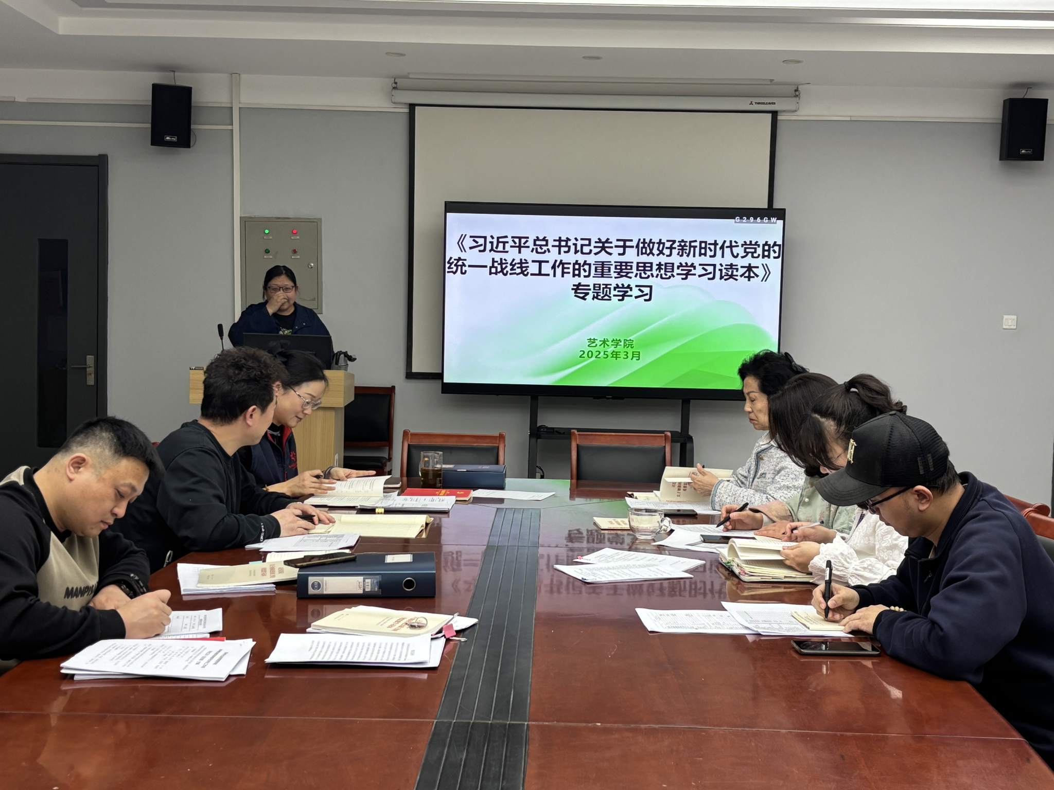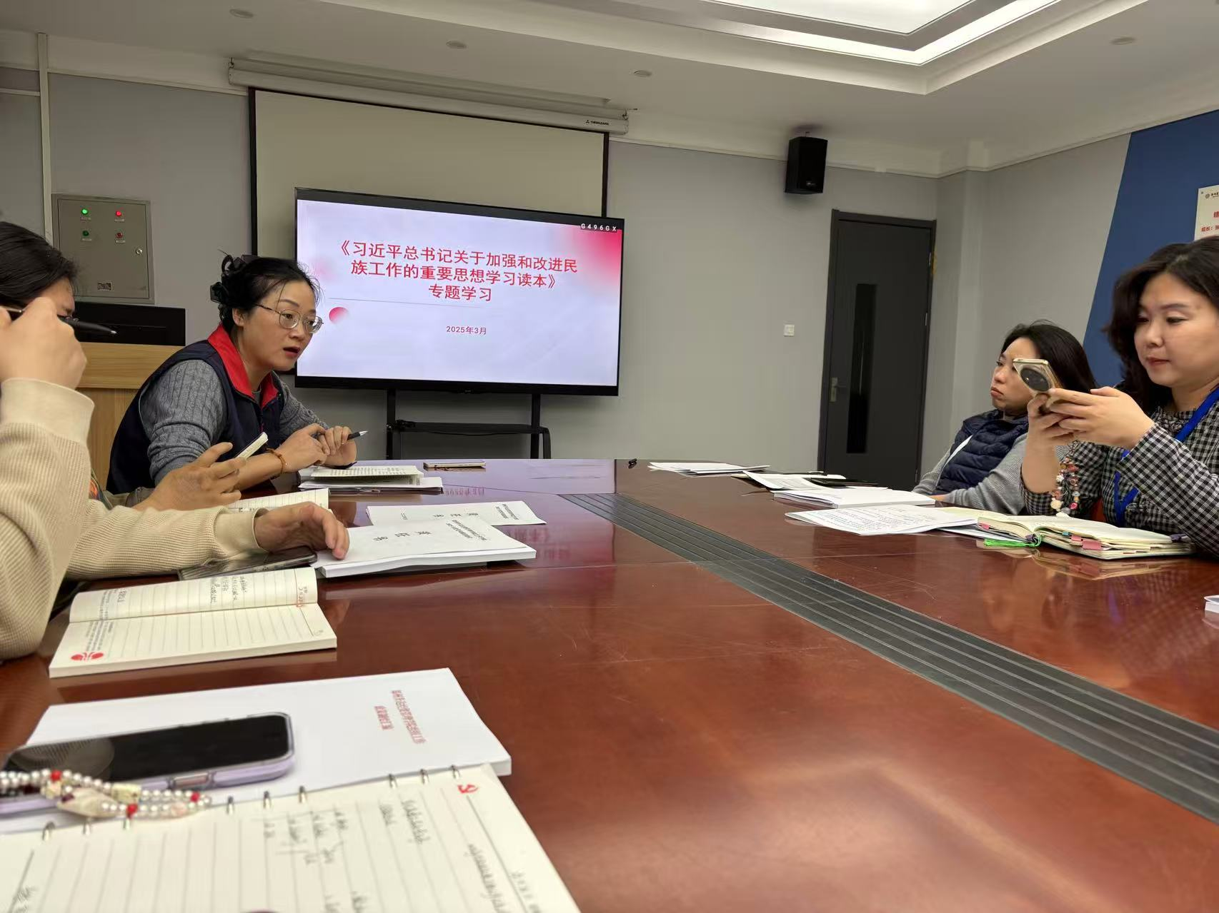 2025年4月24日,公司在全体教职工大会上组织观看《中国共产党历史上的五次统一战线》专题片,系统学习从国民革命联合战线到新时代爱国统一战线的历史脉络。公司党委书记张小雁结合视频内容解析统战工作“凝聚人心、汇聚力量”的作用机理,强调当前需紧扣“五个认同”开展教育实践,并部署各教研室开展专题读书会。