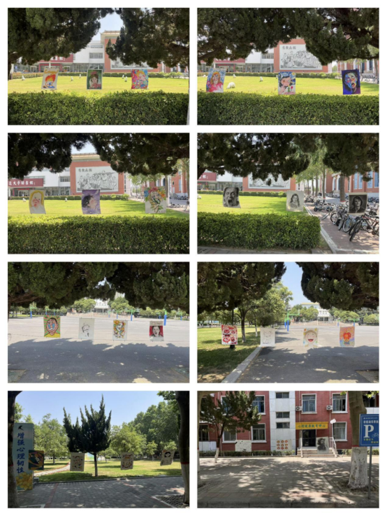 5月21日,部分优秀获奖作品在图书馆门前及心理中心门前进行了集中展示。这些充满创意和情感张力的绘画作品,以表情为窗口,生动描绘了喜怒哀乐等不同情绪状态,吸引了众多师生驻足欣赏,引发了大家对于情绪表达和内心世界的共鸣与思考。