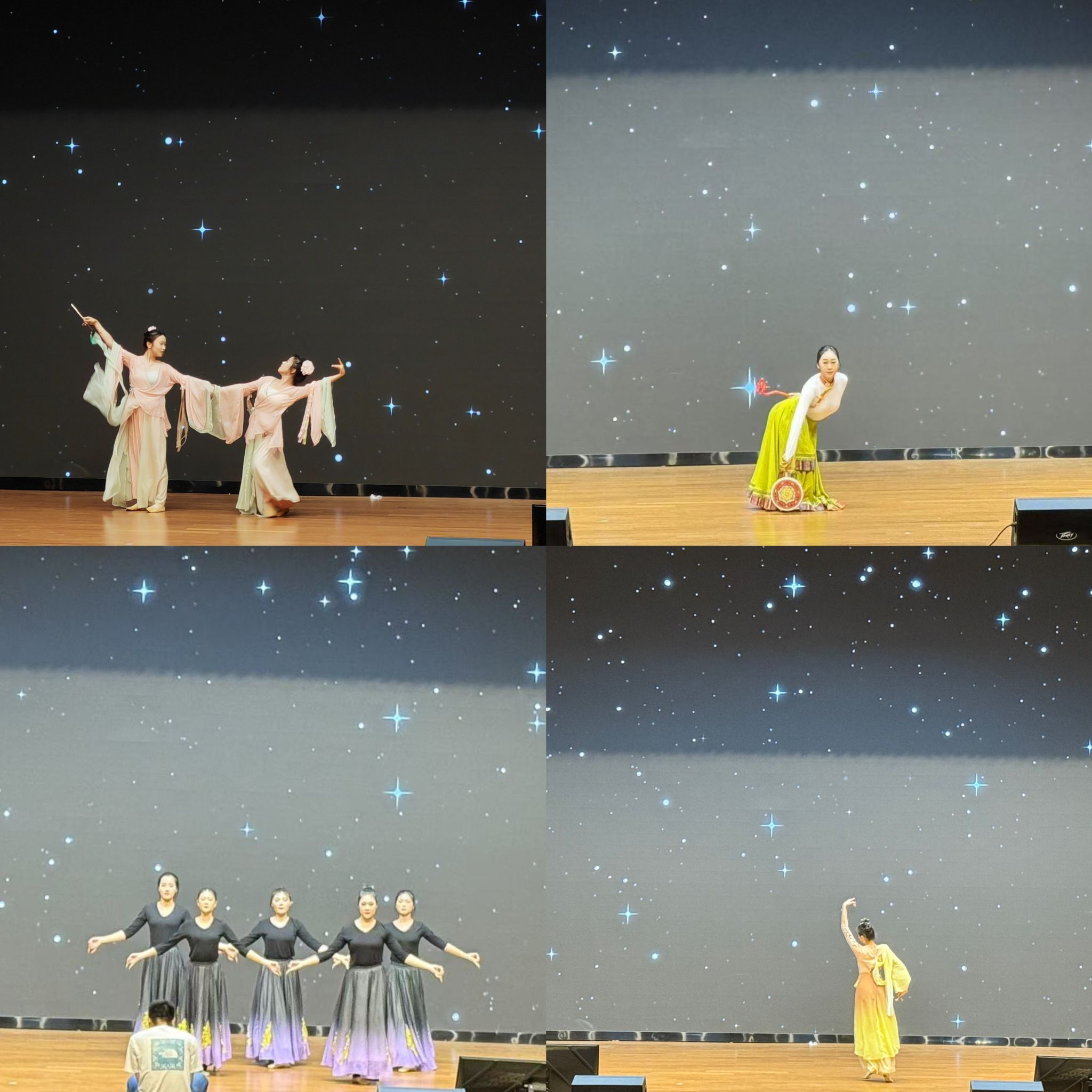 舞台上,双人舞的力量变化、三人舞的空间呼应与群舞的磅礴气势交织生辉,中国古典舞的雅致风韵与民族民间舞的多元神采交相辉映。不同舞种不仅承载着传统文化的深厚底蕴,更融入了创新表达——员工们以肢体语言诠释审美情感,用汗水与热情勾勒青春活力,每一个动作都体现着同学们的专业素养与审美修养。