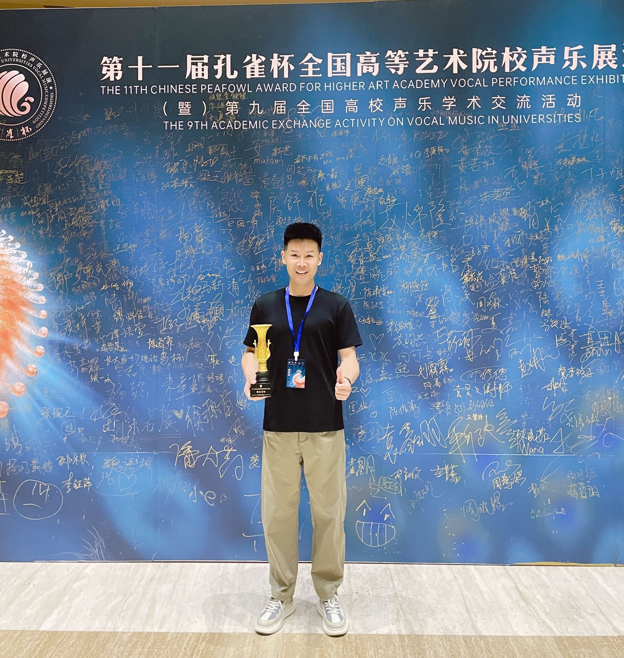 谈及此次获奖,刘新义老师难掩喜悦与感恩之情:“能够在‘孔雀杯’这样声乐界的权威赛事中获奖,我深感荣幸。更让我欣喜和自豪的是,借此平台让全国高校的声乐专家与爱好者聆听到假声男高音的独特艺术魅力,这份荣誉既是肯定,更是鞭策。未来,我将继续精进技艺,在艺术道路上不断求索,以更高的艺术水准回馈公司,为校争光。”