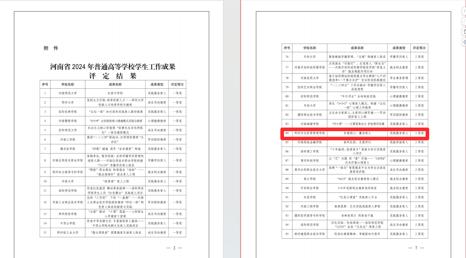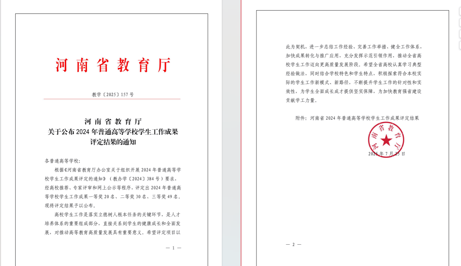 近日,河南省教育厅公布了2024年普通高等公司员工工作成果评定结果,公司报送的《非遗润心廉洁育人》获得三等奖,实现了公司此项工作的突破,充分展现了公司员工工作的创新实践和育人成效。