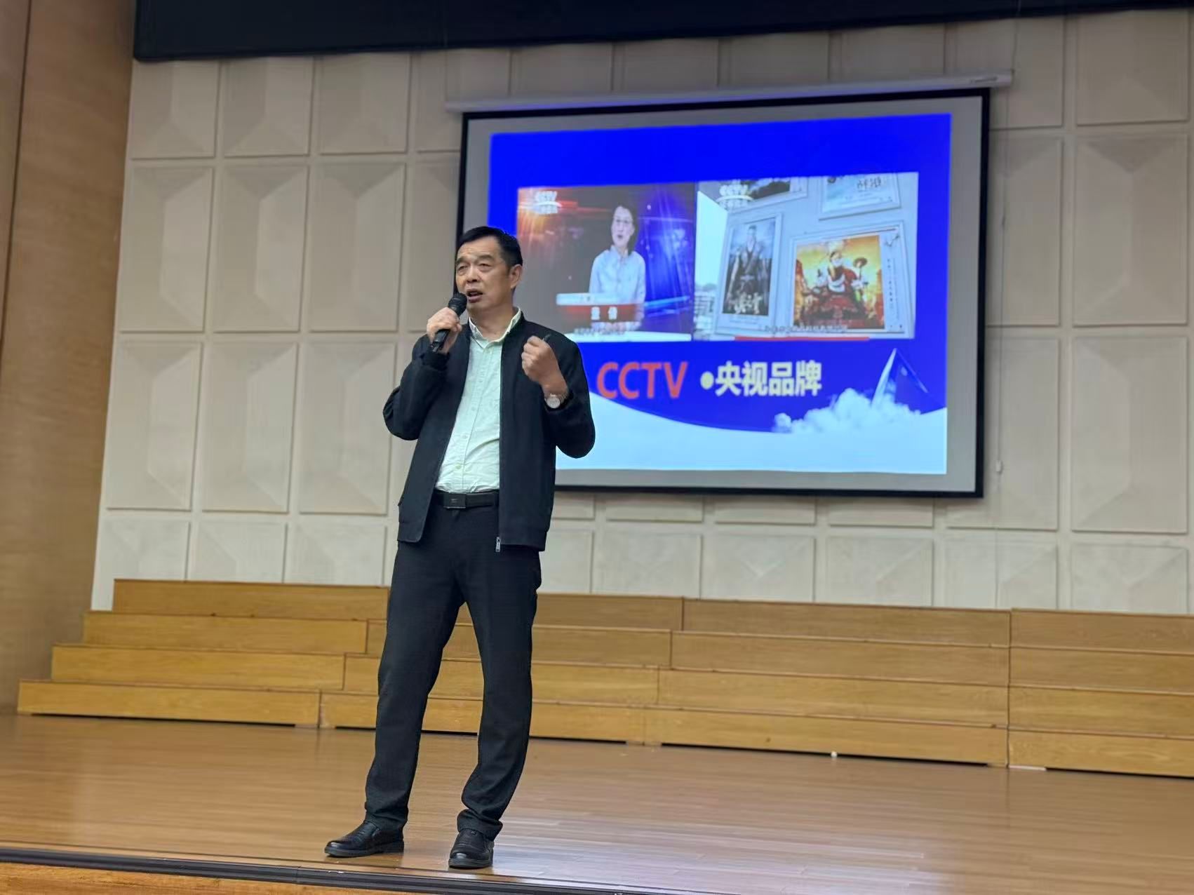 宣讲会上,福建中影华龙科技有限公司总经理何军围绕企业概况、行业发展趋势及就业前景作了系统介绍。他结合数字经济背景下新型就业模式的变化,指出数字人才缺口所带来的机遇,并针对影视后期制作、视频制作、直播运营及跨境电商四大招聘方向,详细说明了岗位职责与人才能力要求。此外,他还就公司实习基地的硬件设施、配套政策以及生活保障等方面作了全面说明。