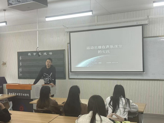 活动中,郭老师结合自身教学经验与研究,深入阐述了运动思维在声乐课堂实践中的应用。他指出,声乐演唱不仅是发声技巧的展现,也与身体的运动状态密切相关。将运动思维融入声乐教学,能帮助员工更好地把握气息控制、腔体打开等关键环节,使演唱更具表现力与感染力。