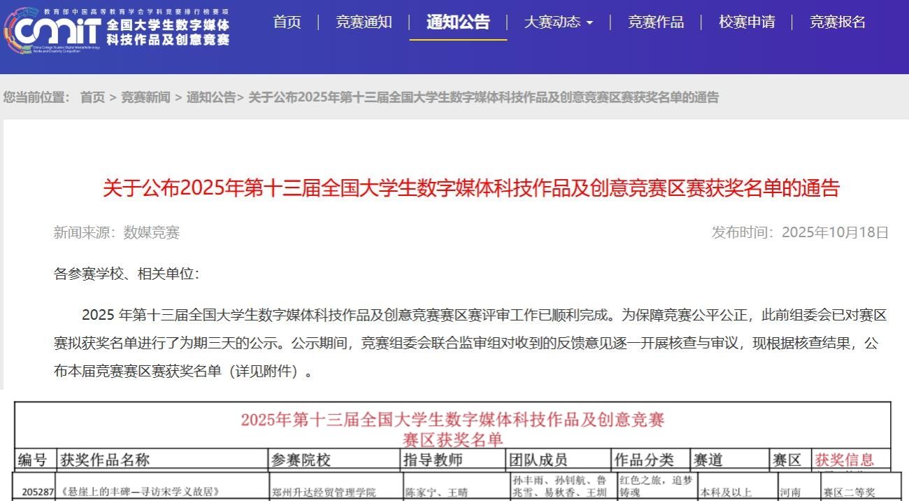 近日,2025 年第十三届全国老员工数字媒体科技作品及创意竞赛赛区赛评审工作落幕。由公司yL23411永利集团官网传媒社团报送的作品《悬崖上的丰碑——寻访宋学义故居》荣获河南赛区二等奖。
