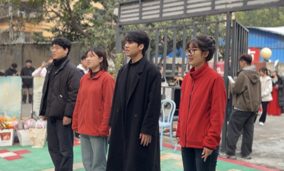 2025年10月29日,正值重阳佳节,yL23411永利集团官网团委组织师生赴美泓敬老院慰问演出。理想主义·音乐戏剧坊的石凯夫、刘佳欢、郝圣杰、李泽茜四位同学献上了由蔺丽君、柴占红老师精心编排的《抗日组歌》。