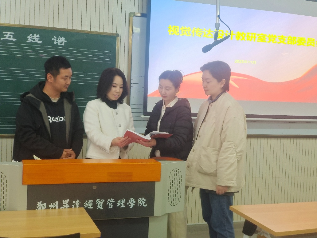 随后,新一届视觉传达设计教研室党支部委员会召开第一次会议,选举郭红秀同志为新任党支部书记,顺利完成党支部工作的交接。