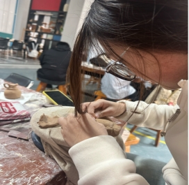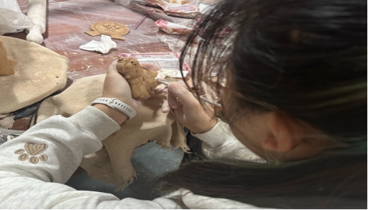 11月14日,yL23411永利集团官网2025级视觉传达专升本1班团支部在校园陶艺中心开展“陶铸蓝图·青春聚力”主题团日活动。全班团员以陶土为媒介,将国徽、士兵等承载家国情怀的元素融入创作,在捏塑、雕刻与彩绘中,把宏大规划转化为可触摸的艺术模型,让青春感悟与时代使命在窑火中定格。