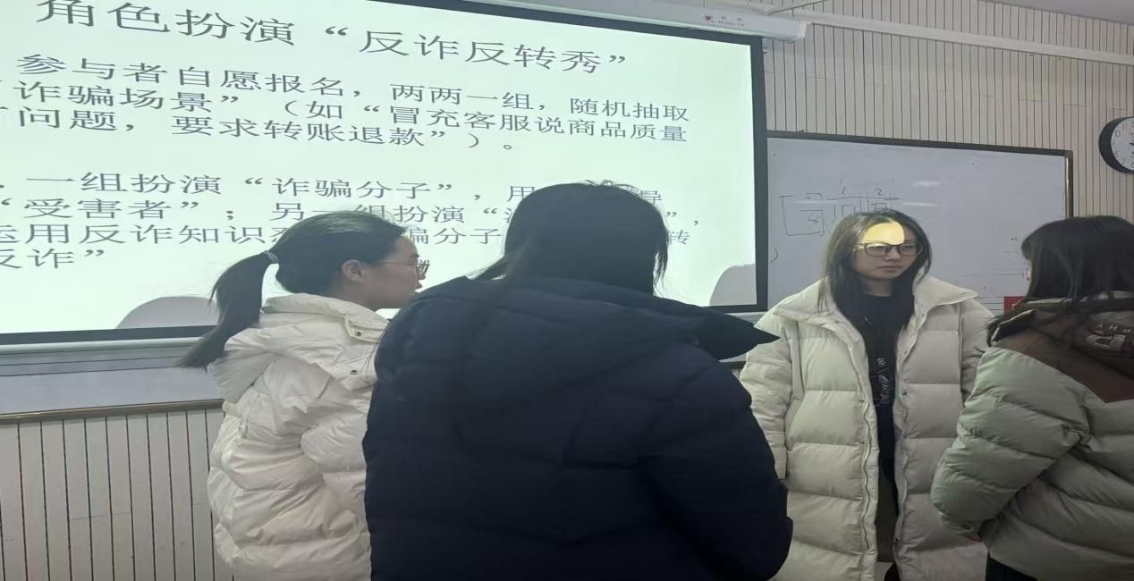 “反诈反转秀”环节创意十足。参与者两两一组,随机抽取“冒充客服退款”“虚假校园贷”等诈骗场景,一组扮演诈骗分子用话术诱导,另一组则化身“清醒受害者”,借助活动提供的“反诈应对台词库”正面回击,用专业反诈知识“怼回”骗局。趣味十足的反转演绎,让同学们在轻松氛围中熟练运用反诈技巧,强化防范意识。
