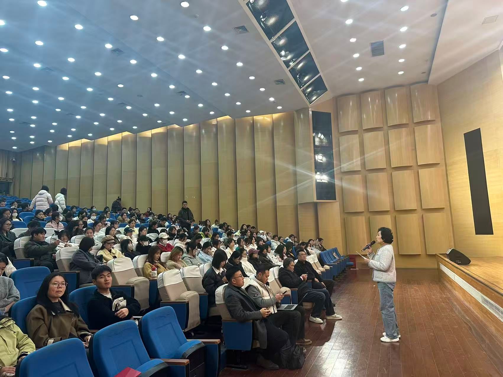 讲座现场座无虚席,李仲党主席结合自身深耕合唱领域的实践经验,剖析当前高校合唱在组织机制、作品创新等方面的现实困局,提出“以时代性作品赋能、以跨学科融合破圈”的发展路径,兼具理论深度与实践指导性,引发在场师生的热烈互动。