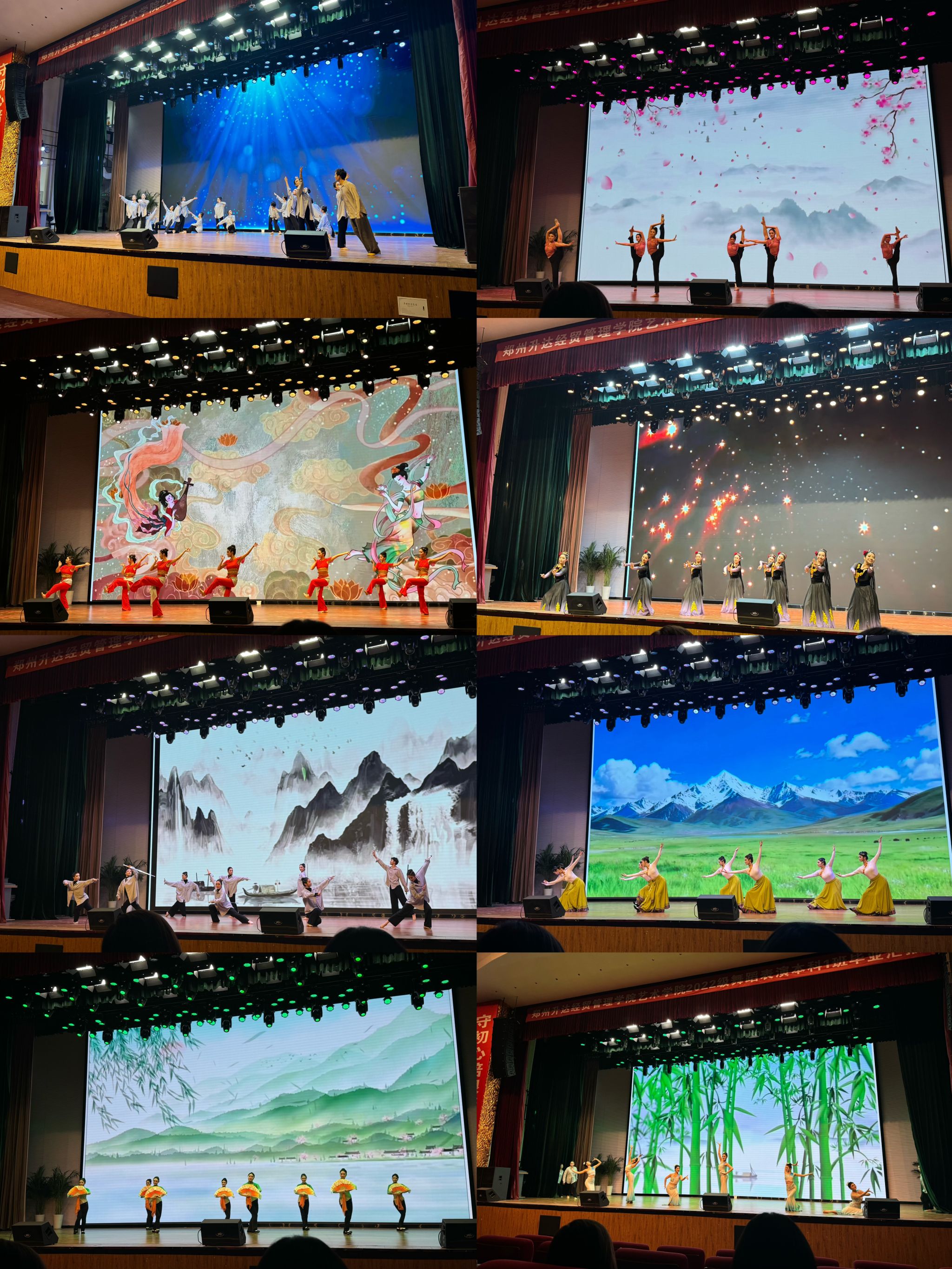 汇报以“时光为轴,情感为魂”,先通过不同类型组合,系统呈现课堂学习成果;再以四大篇章,串联学子从青涩懵懂到从容自信的成长蜕变,用精湛技艺诠释对艺术的执着追求。