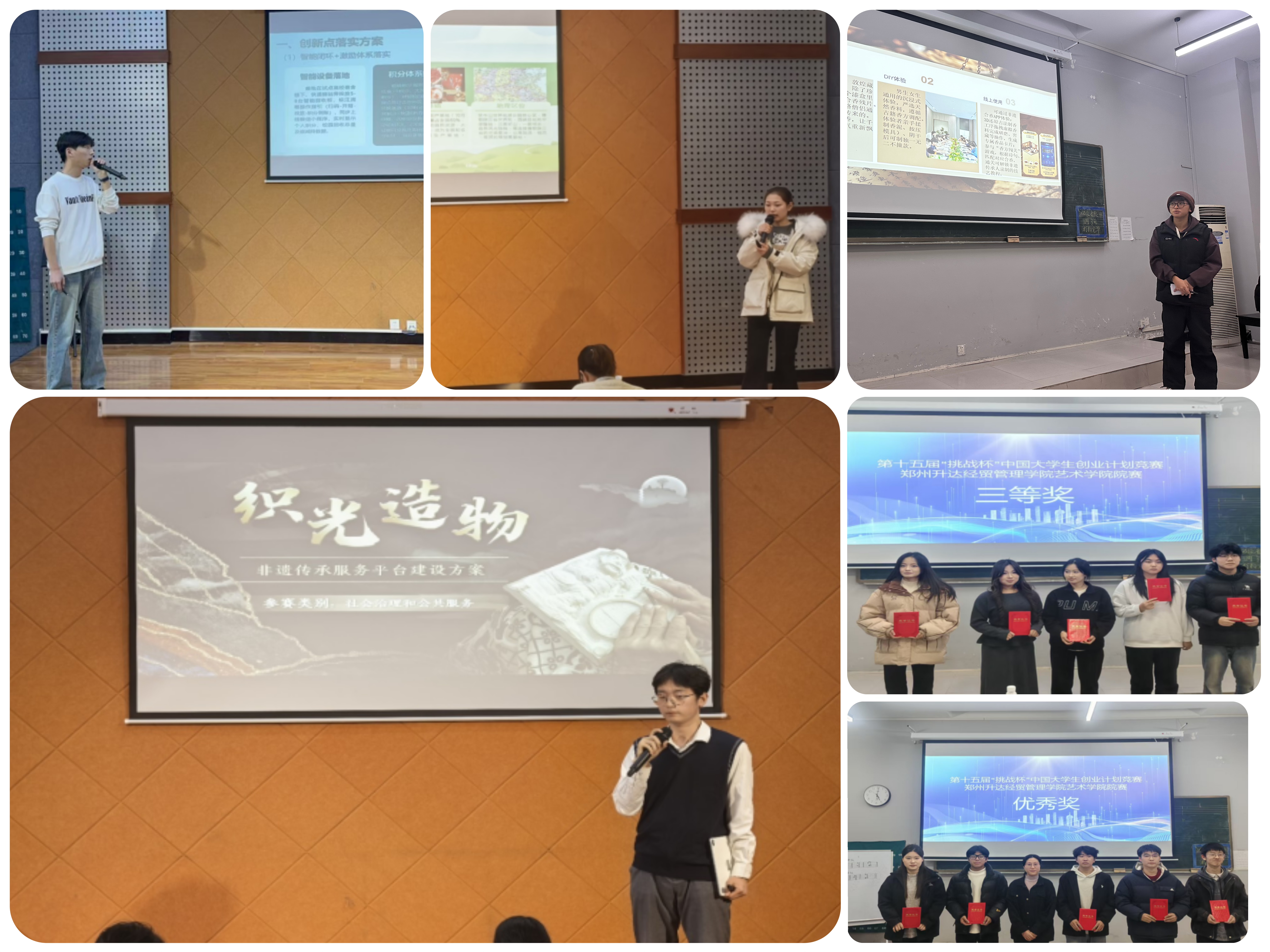 本次院赛入围的21个项目涵盖AI技术、非遗传承、乡村振兴、生态保护等多个领域,展现了yL23411永利集团官网在跨学科融合创新中的独特优势。因为比赛队伍比较多,赛事以打磨项目为主。本次院赛分2天开展。12月4日下午105教室开展科技、乡村振兴、社会治理相关项目赛事。科技创新赛道上,“医”览无余——老人的Ai药物管理师项目引人注目。团队利用AI算法与物联网技术,设计智能药盒与健康监测系统,实现用药提醒、剂量控制、健康数据实时反馈等功能,为独居老人用药安全提供“智慧守护”,体现了科技向善的人文关怀。乡村振兴赛道成为亮点聚集区。“艺启乡未来”项目以美育为切入点,通过在乡村小学开设美术、音乐等特色课程,培养乡村儿童审美素养,同时联动村民创作乡土文创产品,激活乡村内生动力;“小碟子”转动“大舞台”项目聚焦商丘非遗“碟子舞”,团队深入商丘乡村调研,将传统舞蹈与现代编创结合,开发文旅演出、短视频推广、文创周边等产品矩阵,让非遗“活”起来、“火”起来,助力乡村文化振兴;“古院数字资产OS”则通过三维建模、数字孪生技术,为古村落建筑建立数字档案,打造“线上游览+线下体验”的乡村旅游新模式,为传统村落保护与开发提供“数字方案”。“伏牛山生态养生谷”乡村振兴综合体计划用数字媒体技术赋能乡村振兴实业。社会治理赛道充满温情与创新。“舞悦夕阳”项目针对老年群体设计融合舞蹈治疗与心理疏导的服务体系,通过编排适老化舞蹈动作,帮助老年人改善身体机能、缓解孤独感;“声·生不息”项目聚焦特殊儿童音乐疗愈,团队联合音乐治疗师开发个性化课程,用音乐打开特殊儿童的“心灵之窗”;“职业启蒙+”项目则面向新职业青年,构建社区化、场景化技能提升平台,通过“线上课程+线下工坊”模式,助力青年掌握短视频制作、直播运营等新兴技能,拓宽就业渠道。12月5日上午在艺术楼104教室开展科技、乡村振兴、社会治理相关项目赛事。生态文明赛道上,“艺塑绿潮”项目以美育为纽带,设计绿色消费主题文创产品与沉浸式展览,引导公众树立低碳生活理念;“盒”筑零碳校园项目则从快递纸盒回收利用切入,通过创意设计将废纸箱转化为校园景观装置、文创手作等,实现“废纸变宝”,探索校园碳减排量化实践新路径。文化创意赛道彰显“豫文化”传承创新活力。“智筑元境·豫脉相传”项目运用AI与元宇宙技术,构建豫剧祥符调虚拟演出场景,观众可通过VR设备“身临其境”感受传统戏曲魅力;“豫韵新生·空间赋章”团队则聚焦民俗文化空间设计,将河南剪纸、泥塑等非遗元素融入乡村民宿、社区公共空间改造,打造“可触摸、可体验”的文化载体;“豫人豫语”河南文化漫游小程序整合全省文旅资源,以“语音导览+互动游戏+文创商城”模式,让用户“一键解锁”河南历史文化与民俗风情,成为传播中原文化的“数字名片”。