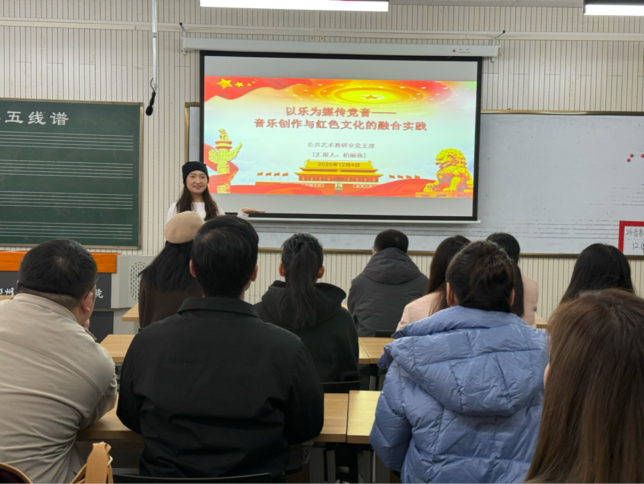 12月4日,公共艺术教研室党支部全体党员在艺术301教室开展“音乐之美传党音——音乐创作与红色文化的融合实践”主题党日活动。此次会议由柏丽燕同志主持,党支部全体党员积极参与。