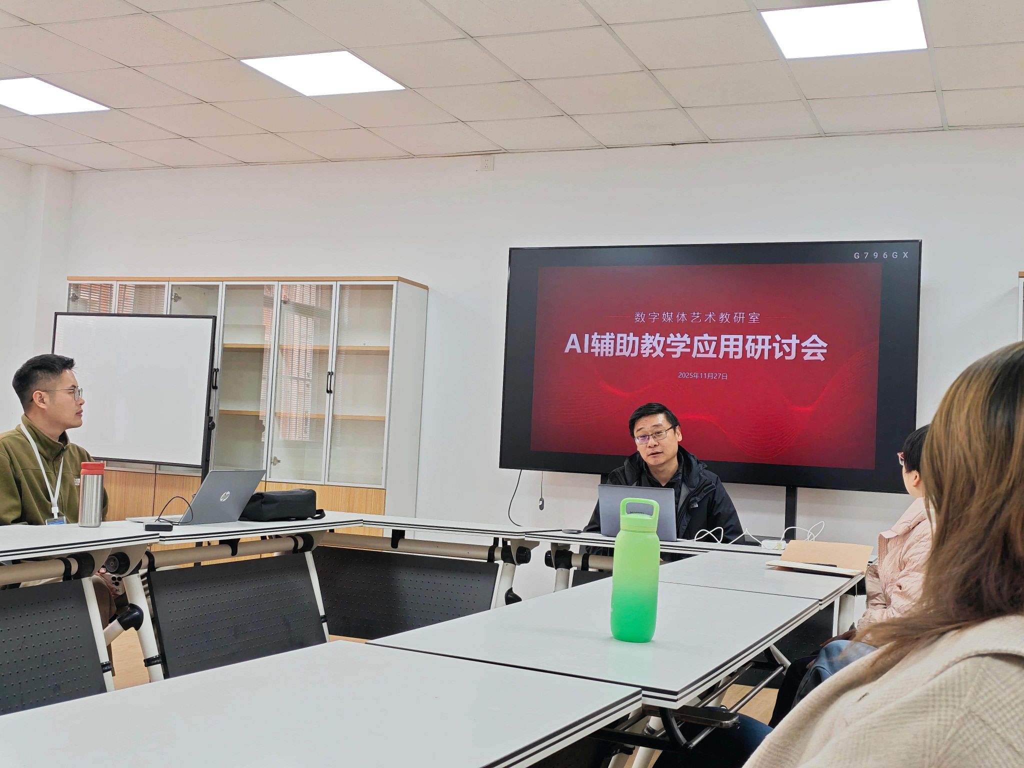 2025年11月27日下午,数字媒体艺术教研室在商管楼108教室召开AI辅助教学应用研讨会。会议由教研室主任杨世英主持,全体专业教师参加。旨在推动AI技术与专业教学的深度融合,提升教学效率与人才培养质量。