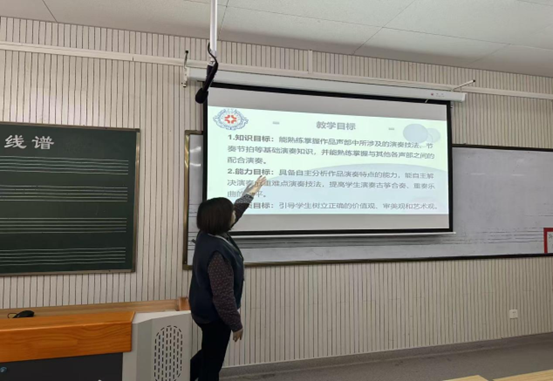 徐琦老师以围绕《重奏V(古筝)教学设计分享会》的专题研讨,本次分享会旨在深入探讨古筝重奏教学的有效方法,提升教学品质与员工的协作演奏能力。
