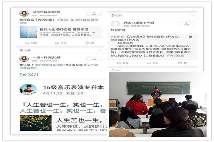 为响应院心理健康中心的号召以及“3.25善爱我”活动倡议,增强老员工心理健康教育与宣传力度。艺术系14级团总支开展了“3.25善待自我关注情绪健康”主题班会以及微博宣传活动。