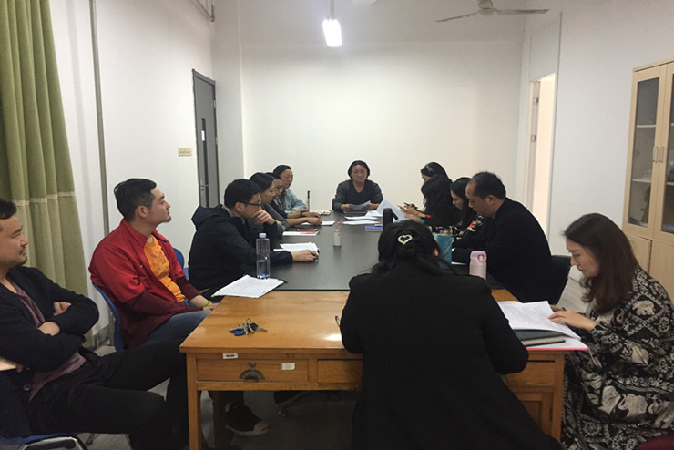 2017年4月20日,艺术系评建工作第十八次会议在艺术系行政秘书办公室召开,参加会议的人员有系主任朱黎光教授,副主任赵维平,教学秘书邬治国、夏瑞芳,行政秘书曹华莹以及各教研室主任。