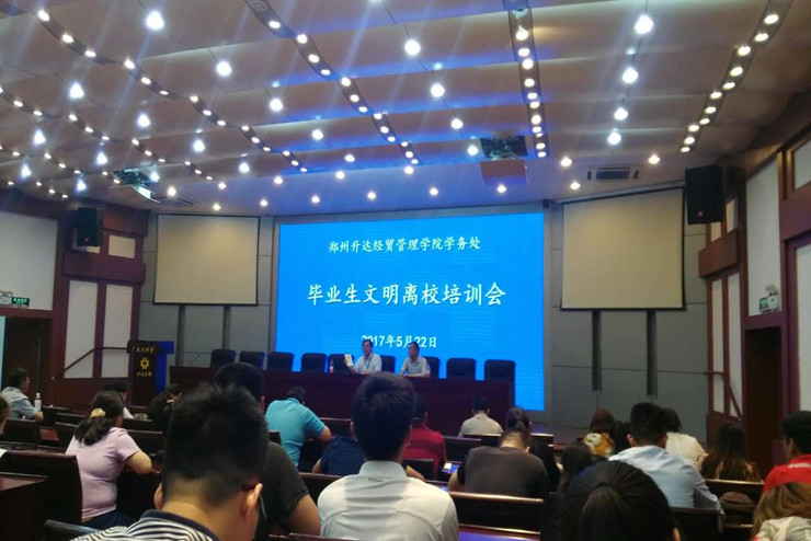 5月22日,公司在行政楼国际会议厅召开2017届毕业生文明离校培训会。会议由学务长张现水主持,副经理张金安发表重要讲话;各系行政秘书,全体辅导员参加了此次会议。