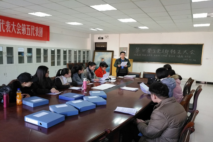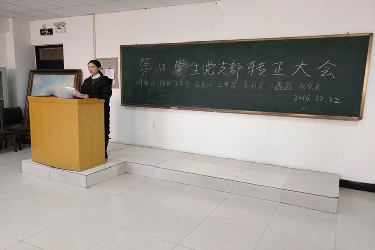 2016年12月22日上午10点,艺术楼406教室召开了艺术系员工第四党支部预备党员转正大会, 支部书记王廉廉,组织委员黄淑珂以及支部全体党员参加了会议。