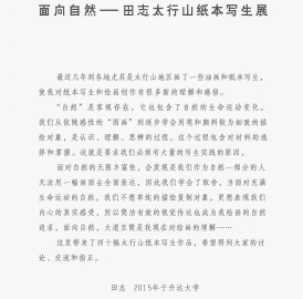 2015年12月25日我系田志老师《面向自然——太行速写》作品展在艺术楼305展厅举办,展出时间12月25日——1月8日,本次展览共展出40幅作品,作品以安阳市林州石板岩太行山景为主题内容。