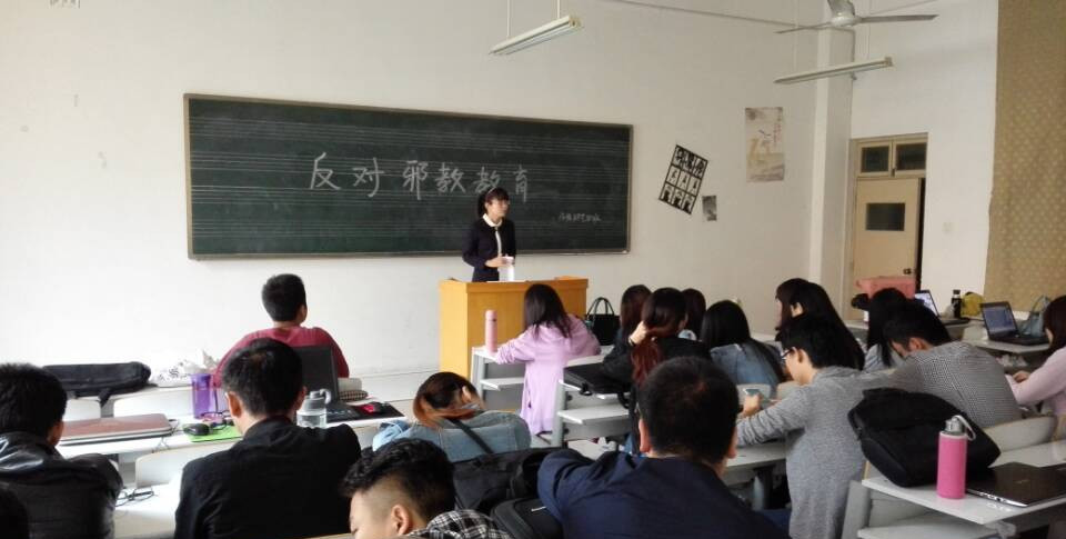 为了帮助广大同学们增强识别邪教、抵制邪教的能力,充分认识邪教等活动的本质及危害性,防止邪教毒害青少年一代,进一步净化校园文化。艺术系按照院系部署于近日开展了“崇尚科学,反对邪教”的警示教育活动。