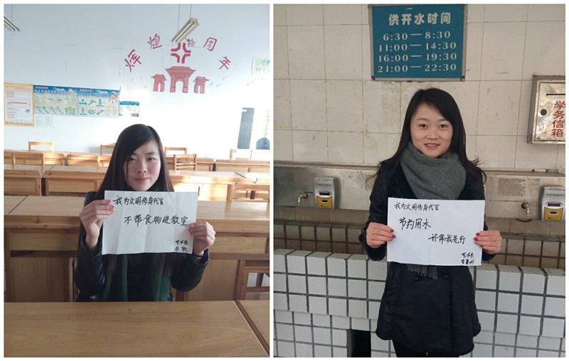 文明修身,重在纠正不文明行为。上课迟到、在课堂上吃早点,图书馆内大声说话,课桌墙壁上乱涂鸦,还有开了水龙头不关紧,人走教室空灯亮如白昼,随地乱扔纸屑——这些不文明行为在大公司园中屡见不鲜。艺术系12级团总支在各班开展“我为文明修身代言”活动,从身边的每一件小事、每一个行为,号召全体员工规范行为,文明修身,完善自我。