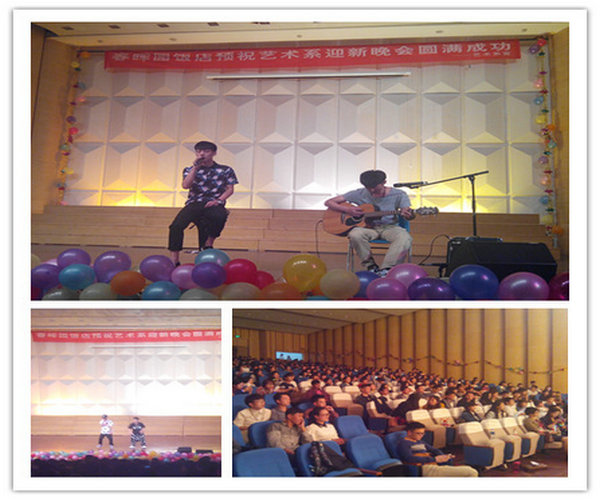 四海学子同聚郑州升达,欢歌曼舞喜迎艺术新生。10月9日晚,艺术系2014级迎新晚会在艺术楼音乐厅隆重举行。艺术系行政秘书兼团委书记曹华莹老师,辅导员豆永丽、姚立、岳晓宁、王赞、刘晓飞等老师与现场近五百名新生观看了晚会表演。