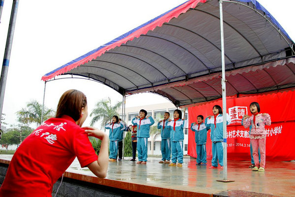 2014年3月8日,艺术系2012级音乐表演专业部分员工代表赴“德基金”第19期乡村艺术支教团前往遂溪县双村小学进行爱心支教。早上八点五十分,志愿者们到达了双村小学,双村小学的同学们已在校门口翘首等待,看到志愿者们的到来,同学们都露出了满脸微笑。