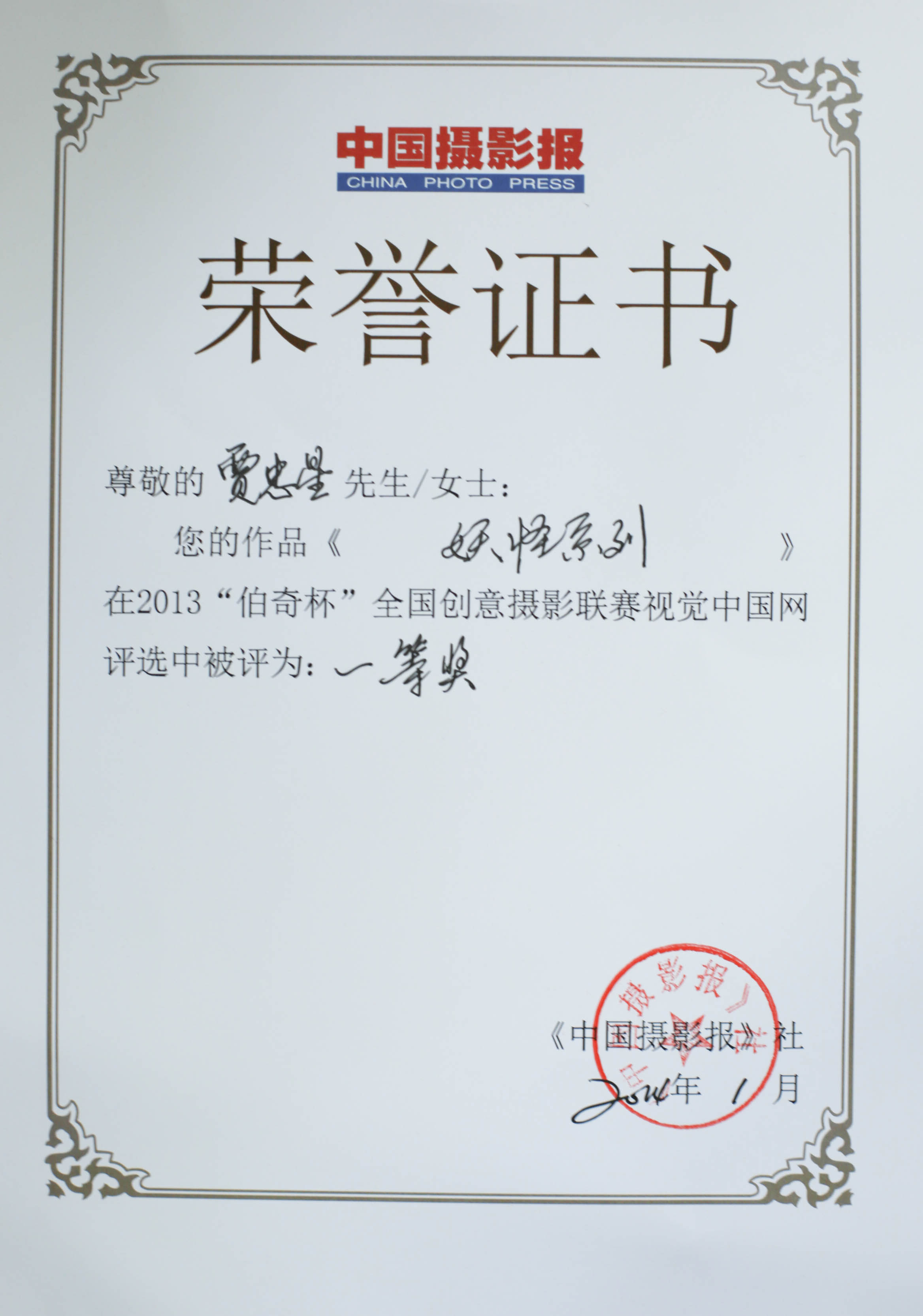 艺术系青年教师贾忠星的摄影作品获得伯奇杯全国创意摄影大展一等奖
