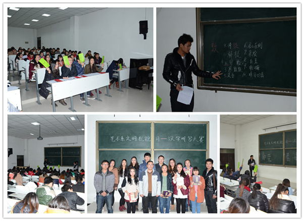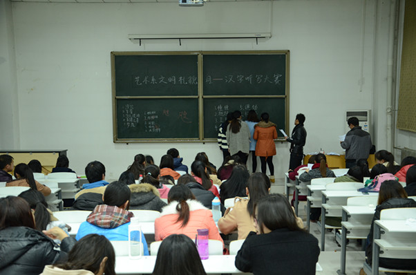 汉字是中华民族智慧的结晶,是中华文明最重要的载体。近期各媒体汉字听写节目引起人们广泛关注。为提高同学们汉写读写、识别能力,艺术系12级团总支于11月28日,在艺术楼举办了“文明礼貌月汉字听写”活动。艺术系辅导员姚立老师主持了此次活动。