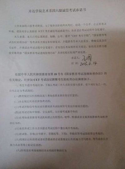 艺术系开展签订四六级考前承诺书活动
