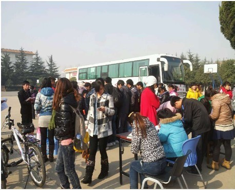 九点在与医护人员的配合协调下献血活动正式开始,同学们积极的参与,艺术系志愿者服务人员为每位前来献血的师生讲解着注意事项,并为她们送上热糖水,让每一位奉献自己爱心的同学也同时感受到他人的温暖。现场由于参与人数较多,两辆献血车显得有些不够,但大家表现出了我们升达师生的良好素质,有序的排队等候着。