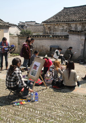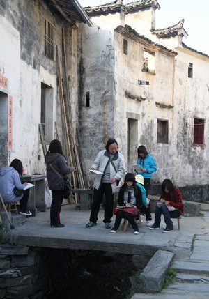写生基地西递村隶属于安徽省黄山市黟县,与世界文化遗产宏村相邻,是拥有四百多年历史的古村落。村庄既有依山傍水的自然风光,又有大量保留完好的明清时期徽派建筑,自然与人文交融,是写生的上佳之选。白天,员工在专业教师的指导下寻找景点作画,用素描、水彩和油画等形式极力彰显自己的艺术表现能力。晚上,再由指导教师对员工作品进行一一点评,帮助员工理论与实践结合,不断提高写生能力,更好地掌握艺术创作的技巧。写生期间,我系员工充分发扬升达精神,展示了较高的综合素质,取得了良好的社会效应。临行前晚,同学们用精心准备的文艺节目为此次写生活动划上了圆满的句号。