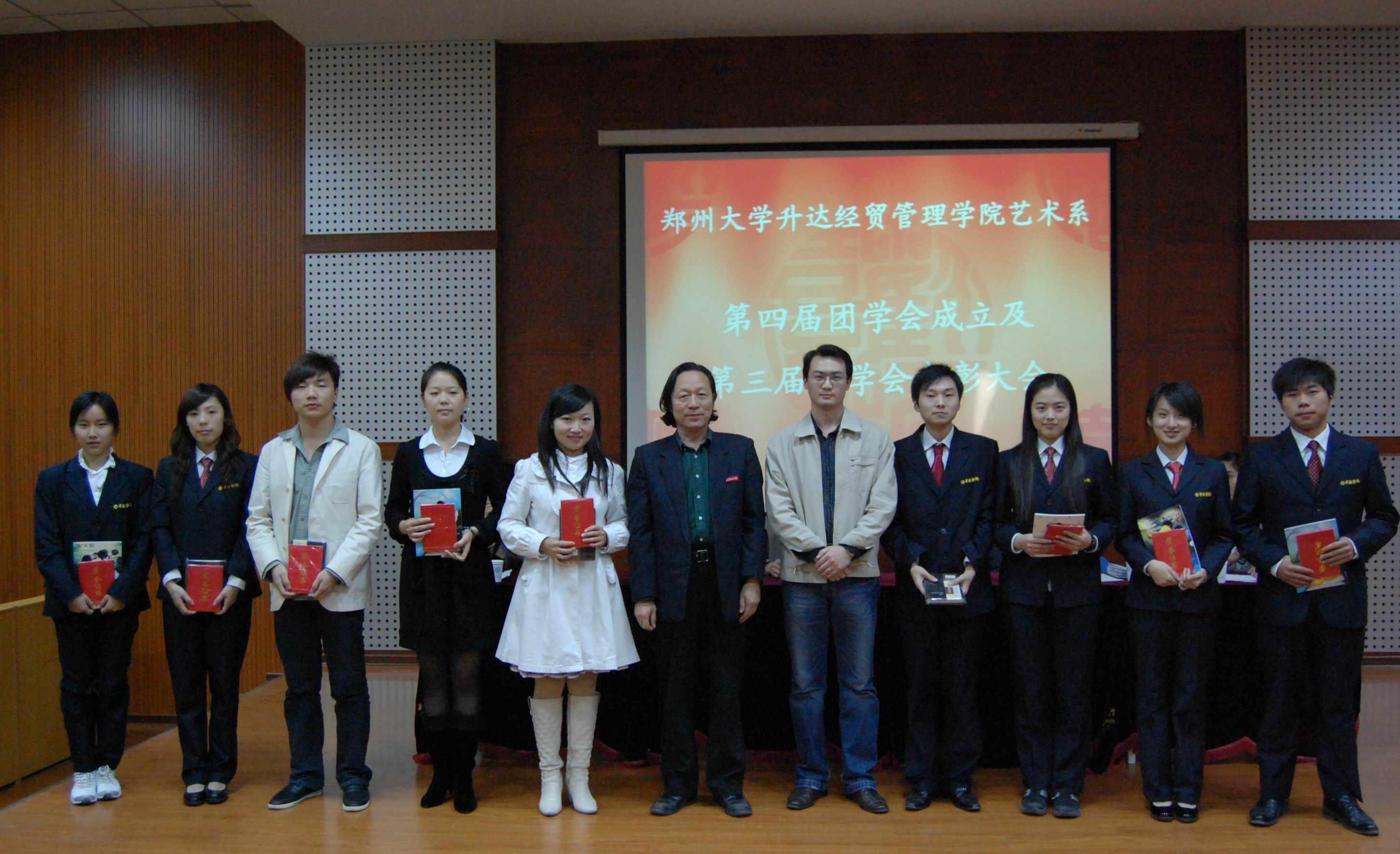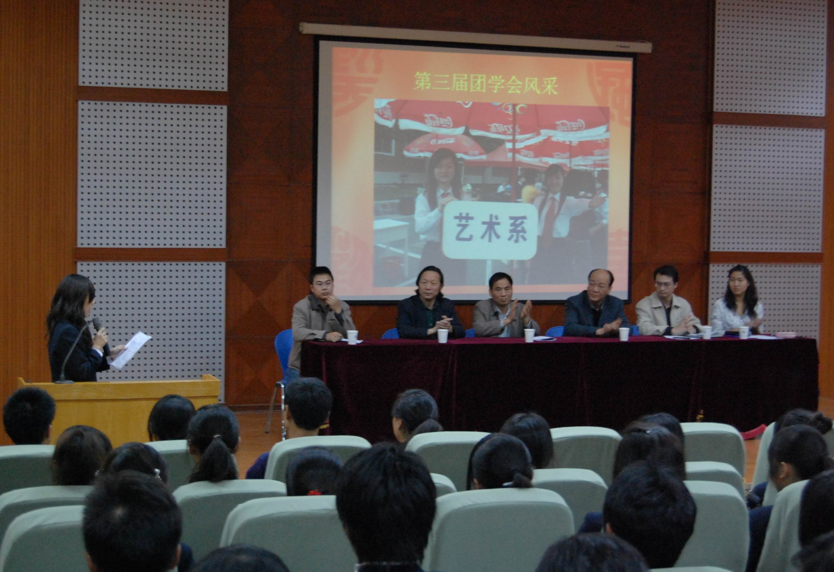 2009年10月22日下午四点整,艺术系第四届团学会成立及第三届团学会表彰大会在艺术楼105隆重举行,艺术系肖生主任、党总支王守伟书记、赵维平副主任、韦杨建副书记、邬治国副书记、艺术系全体辅导员老师出席了会议,大会由艺术系行政秘书、团委书记曹华莹老师主持。
