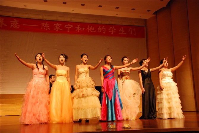 本场音乐会在陈家宁老师热情洋溢的讲话中拉开了序幕,本场音乐会节目形式多样,有男女声独唱,重唱,男生小合唱,女生小合唱等等,题材更是丰富多彩,包含中国歌剧咏叹调、外国歌剧咏叹调、中国艺术歌曲、中国创作歌曲、外国民歌、中国民歌等使整场音乐会爆发出一个又一个高潮。