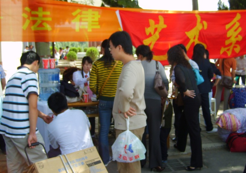 9月10日是公司大一新生报到的日子,校园里人声鼎沸,热火朝天。艺术系师生在系主任肖生教授、教学秘书柴占红老师、团委书记兼辅导员邬治国老师的带领下承担着接送180余名新生的重任,05级37名同学除去有特殊情况的六名同学外,剩余31名同学全部投入到紧张繁忙的迎新工作中。31名接待人员!仅有的7名男生!180余名新生!巨大的人数悬殊,艰巨的接待任务就摆在面前,但面对困难,艺术系的师生没有退缩,有困难克服困难也要上!根据公司热情、耐心、热烈、有序的原则,我们周密计划,统一安排。只见烈日下,十八九岁的大二女生、年轻的女教师用笑容,用热情承担着所有新生的接送、引领、登记等工作;仅有的7名男生用两辆三轮车在一天内帮助181名新生运送行李!衣服湿透了,风干了接着干;肚子饿了,啃块面包继续干;腿跑酸了,刚坐下休息,看到远道而来的新生,看到风尘仆仆的家长,立即起身继续干……师生们亲切笑容,贴心的话语让员工、家长们感受着家的温暖;晒黑的皮肤,湿透的衣背,传递着艺术人坚韧不拔的精神!