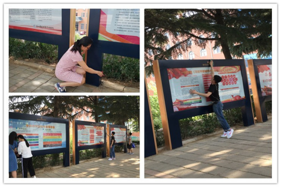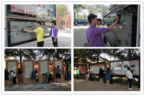 员工党员们积极认真,干劲十足的精神状态,为广大师生树立了榜样,充分起到了先锋模范的作用;校园各处的宣传栏在同学们的打扫下焕然一新。