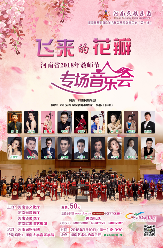 2018年9月10日晚19:30,由河南省文化厅、河南省教育厅、河南省财政厅、河南省歌舞演艺集团共同主办的“飞来的花瓣”——河南省2018年教师节专场音乐会在河南省艺术中心音乐厅隆重举行。公司yL23411永利集团官网教师池浩东、郭亚琼受邀参演,分别演唱歌曲《再见了大别山》和《再一次出发》。